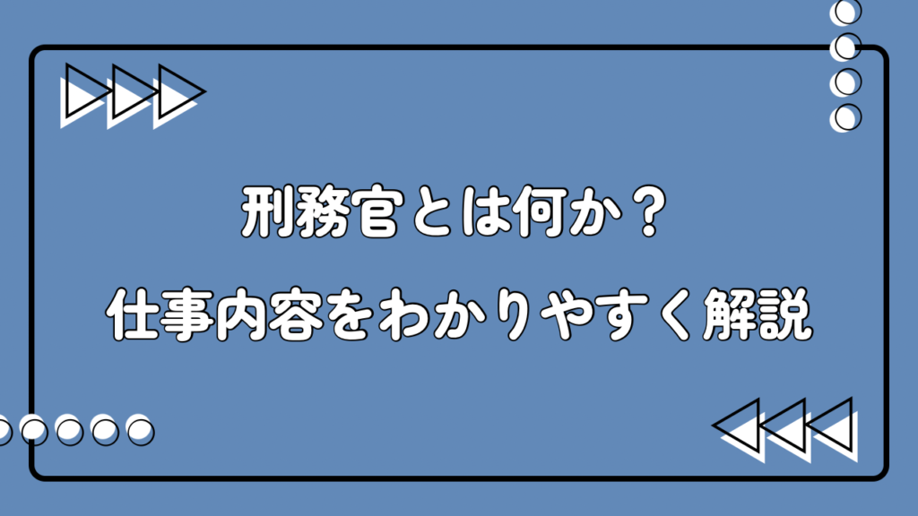 刑務官とは何か?仕事内容をわかりやすく解説 「刑務官」という言葉を聞いて、どのような情景を思い浮かべるでしょうか。多くの人はドラマや映画の影響から、厳格な看守が受刑者を監視する姿を想像するかもしれません。しかし、実際の刑務官とは、単なる監...