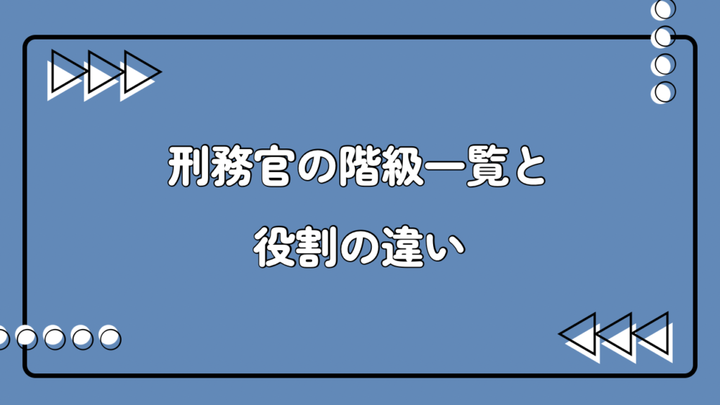 刑務官の階級一覧と役割の違い 刑務所や少年院といった矯正施設で働く刑務官。その組織構造を支えているのが、厳格に定められた「階級制度」です。初めてこの職業について調べる際、「階級があるということは、軍隊や警察のように上下関係が厳しいのではな... -